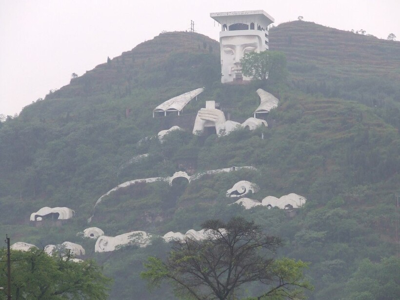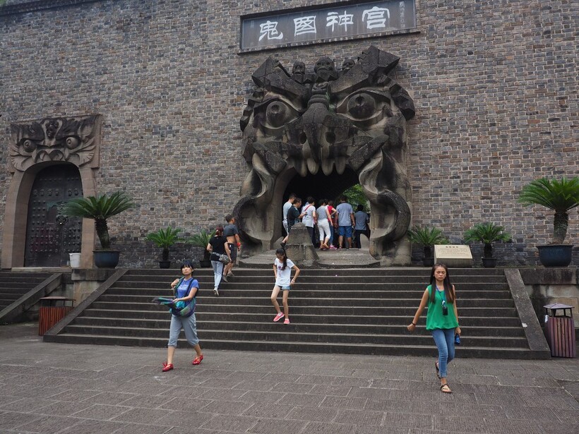 В 170 км от Чунцина, в скале, которая возвышается над рекой Янцзы, вырезана огромная скульптура. Это изваяние давно стало символом города Фэнду, который когда-то находился у подножия горы. Когда в 1990-х годах была запущена ГЭС «Три ущелья», город затопили, а жителей переселили выше. Но комплекс храмов на скалах не ушел под воду, и в последние годы он стал привлекать туристов.