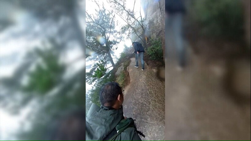 Мужчина во время прогулки оступился и полетел вниз с крутой скалы. Падение длилось буквально несколько секунд, но возможно, это самые волнительные секунды, которые вы сегодня вообще увидите. На кадрах Ян Мэн скользит по горе, пока не встречается с деревом: оно и остановило падение.