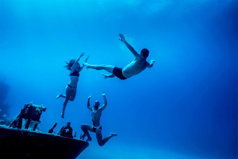 Каждый из участников этой компании ― опытный фридайвер, все они могут задерживать дыхание до трех минут. Этого было достаточно, чтобы сделать такие необычные карды.