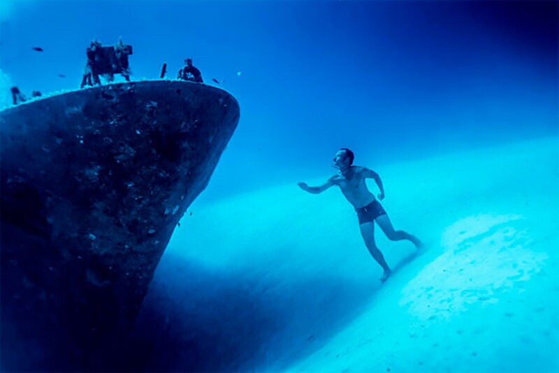 Он нашел фридайверов, которые захотели поучаствовать в съемке. Под его руководством они опустились на дно океана.