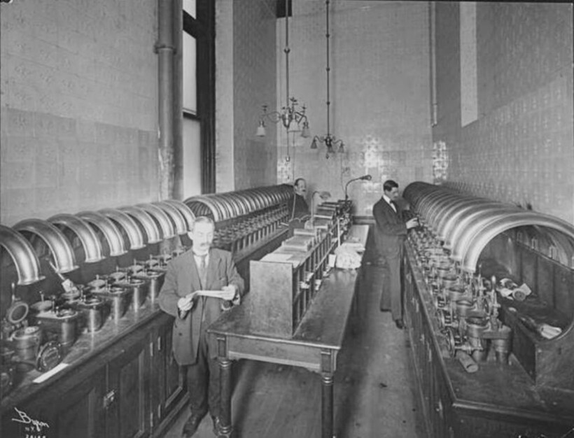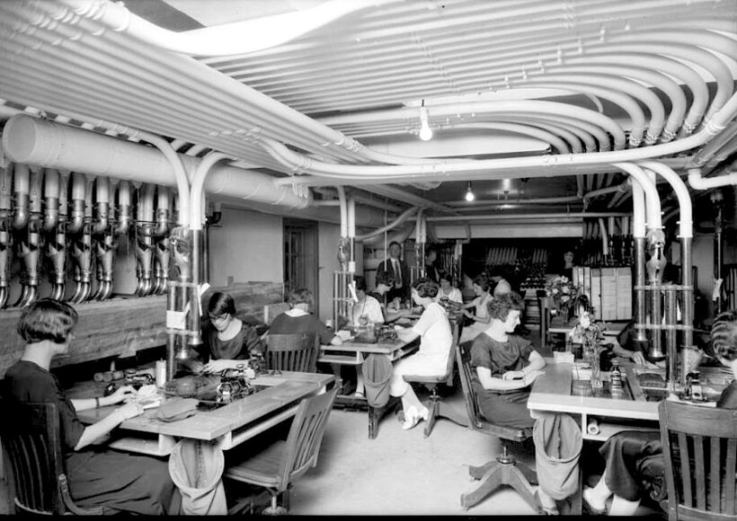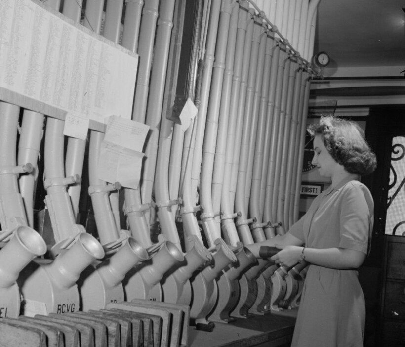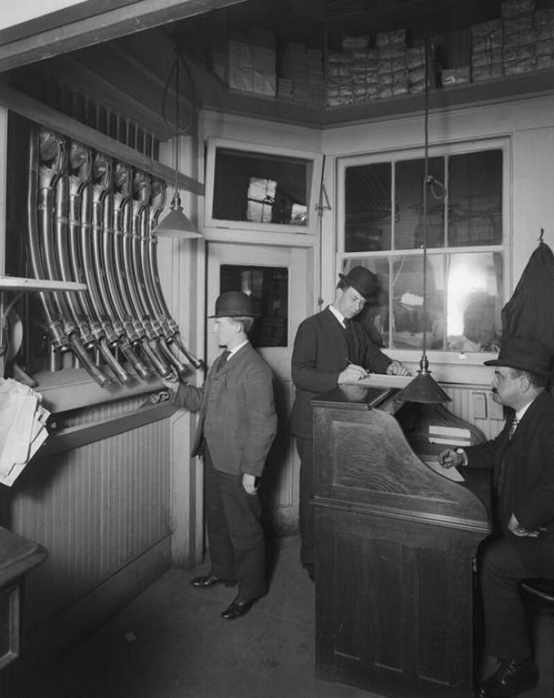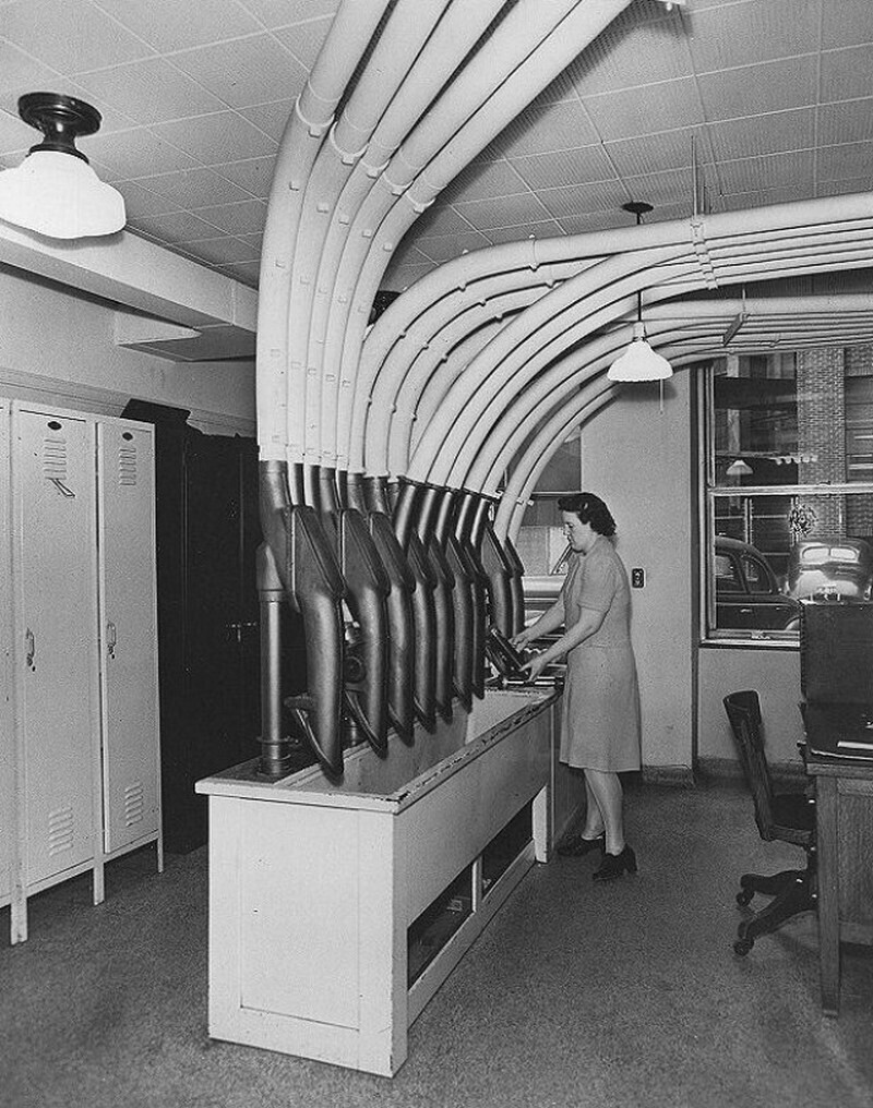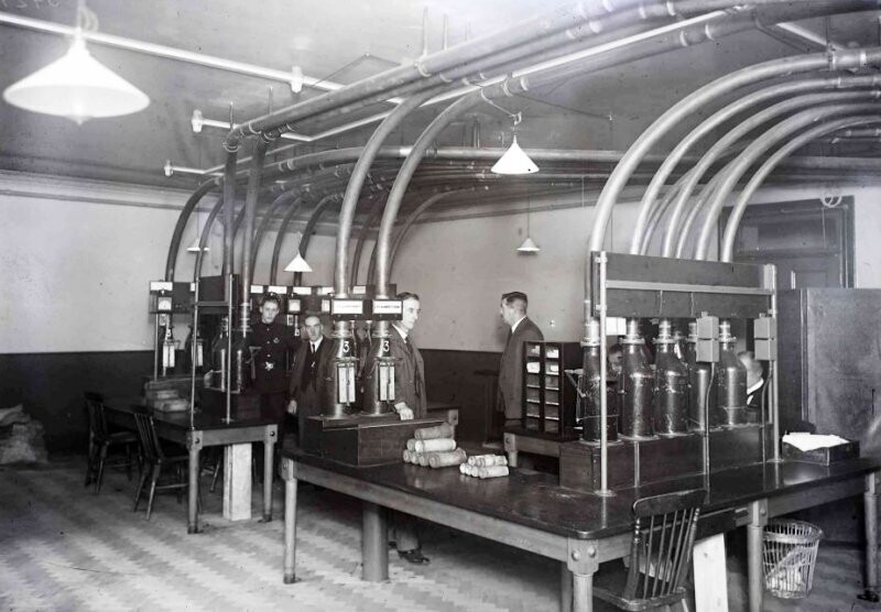 Пневматическая система передачи посылок ― это не новинка XXI века, впервые концепция такой транспортировки появилась еще в конце XVIII века. В XIX столетии она была особо популярна в Европе и США. Например, в Лондоне к 1880 году функционировало 35 километров подземных труб. Впервые их стали использовать в почтовых отделениях, но к началу ХХ столетия пнемопочтой пользовались универмаги, банки, больницы и другие учреждения. Перед вами архивные фотографии, как проходил этот процесс в прошлом.