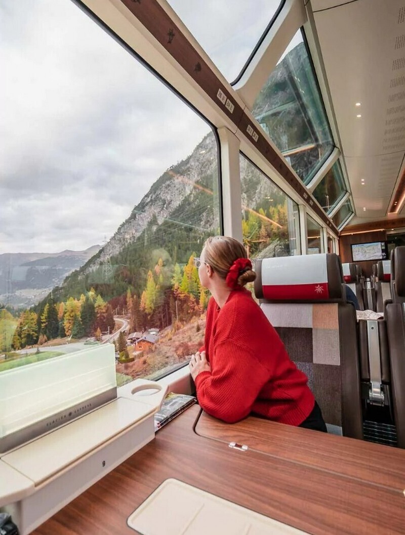 Не спешите делать выводы, что 36 км/час ― это очень медленно, и такая поездка в XXI веке выглядит издевательством. Glacier Express ― это туристический маршрут, и он специально двигается с такой скоростью. Он проходит по самым красивым местам Швейцарских Альп, так что пассажиры смогут насладиться всеми природными чудесами, которые предлагает регион. Чтобы максимально погрузиться в волшебный мир гор, у поезда установлены панорамные окна.