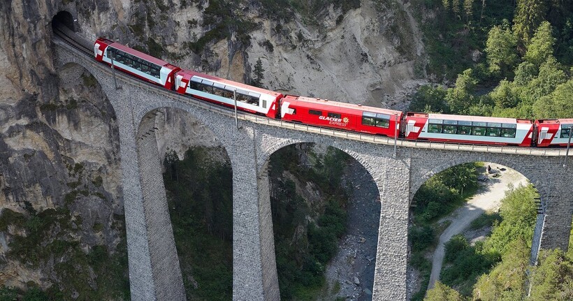 Да и что говорить, сама поездка на Glacier Express захватывающая: дорога проложена еще и по одной из самых сложных территорий Европы. Здесь крутые подъемы и спуски, экспресс проезжает по туннелям и высоким виадукам: он проходит по 291 мосту и 91 туннелю. Предлагаем вам посмотреть, как выглядит эта поездка, и убедиться, что 36 км/час ― это идеальная скорость для таких восхитительных пейзажей.