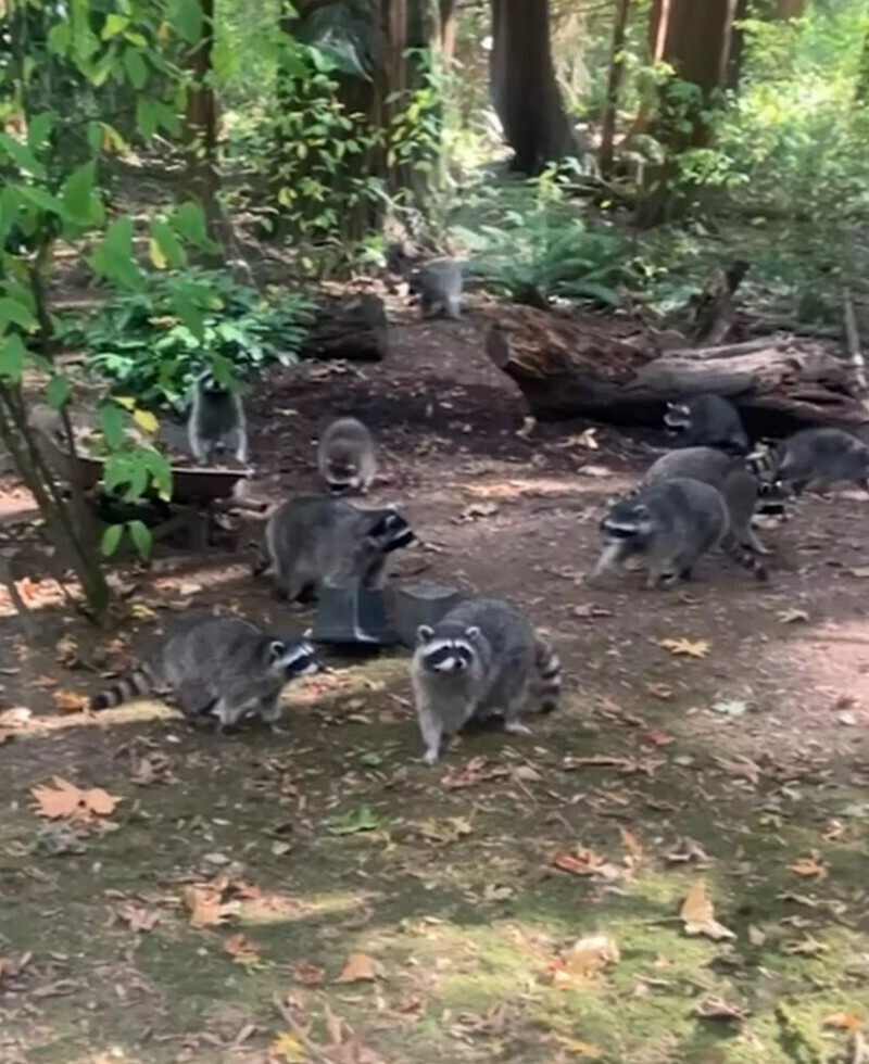 Женщина регулярно подкармливала енотов почти сорок лет у себя на заднем дворе. Казалось бы, это весьма безобидное и милое занятие. Но несколько недель назад к американке стало заглядывать все больше и больше животных, пока в один прекрасный день в ее дворе не оказалось около сотни попрошаек! В итоге женщине пришлось обратиться в полицию, так как она даже не могла выйти из дома.