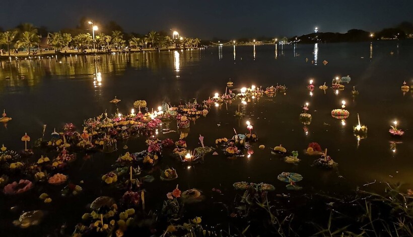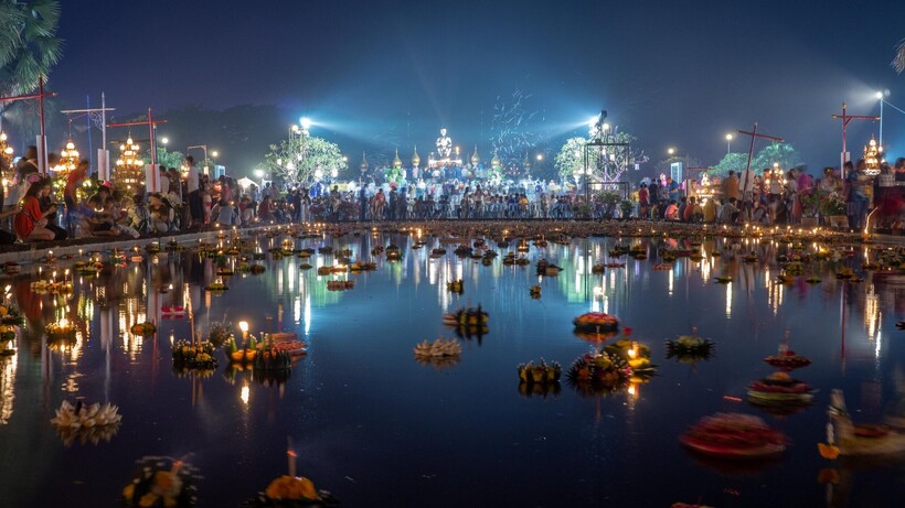 В полночь тысячи тайцев запускают на озерах, реках и прудах кораблики со свечками