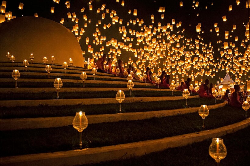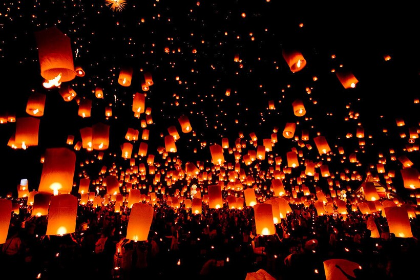 Так что в полночь в Чиангмае огни повсюду: плавают в воде, свисают с деревьев и зданий и парят в небе