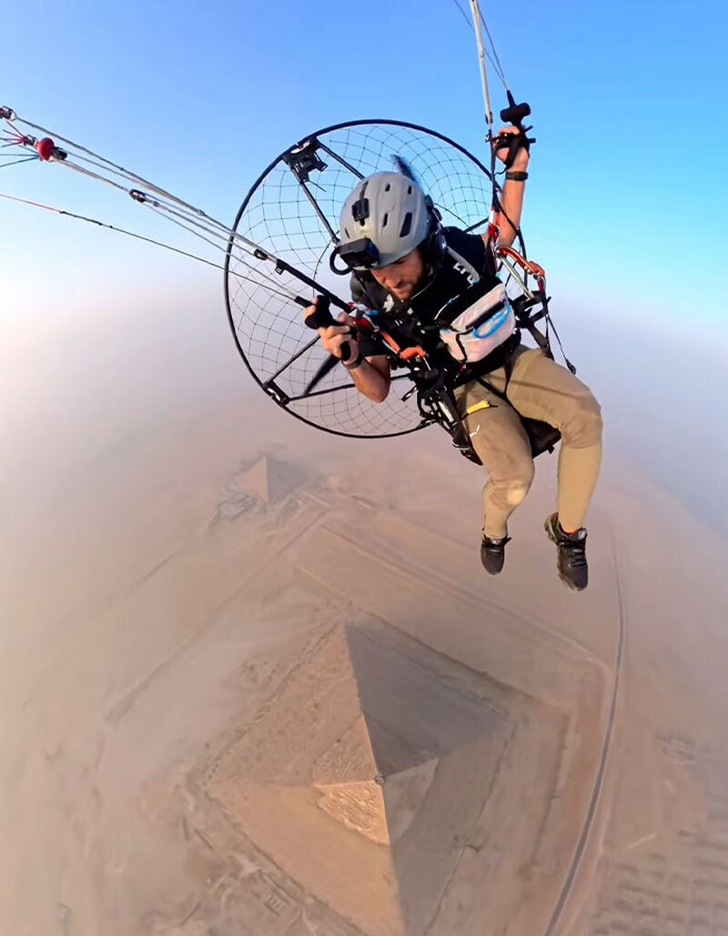 Пса заметил пилот мотопараплана: он снимал видео, как летает над сфинксом и пирамидами, когда увидел, что на одной из них прогуливается пес. Через несколько часов появился и другой ролик: собака с ловкостью альпиниста спускается с пирамиды. Каждый шаг четвероного путешественника был таким уверенным, что невольно закрадываются подозрения, будто пес совершает такой подъем не в первый раз.