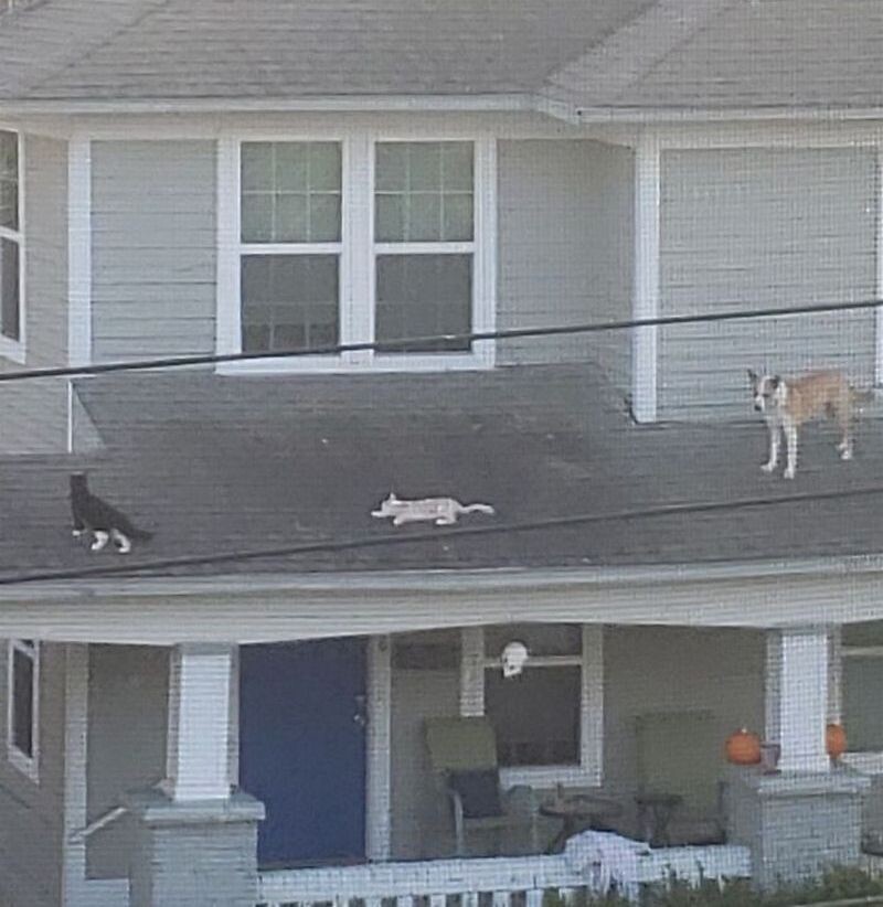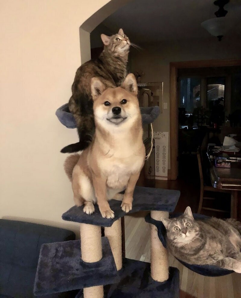 Считается, что кошки с собаками не ладят: в этом материале мы рассказывали, почему так сложилось. Однако если кошка и собака знакомы с детства, то они могут прекрасно ужиться. Но самое удивительное, что они перенимают повадки друг друга. Особенно восприимчивы собаки. Если пес много времени проводит в кошачьей компании, он начинает себя вести немного странно: ходит в лоток, спит в корзинке, свернувшись клубочком, и даже забирается… на крышу! За такой дружбой безумно интересно наблюдать!