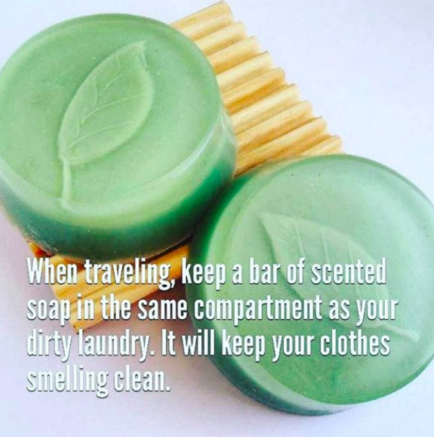 Сохраните приятный свежий аромат одежды, поместив несколько маленьких кусочков мыла в чемодан.