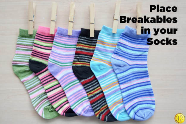 Избежать неприятностей можно, если поместить бьющиеся предметы в носки.