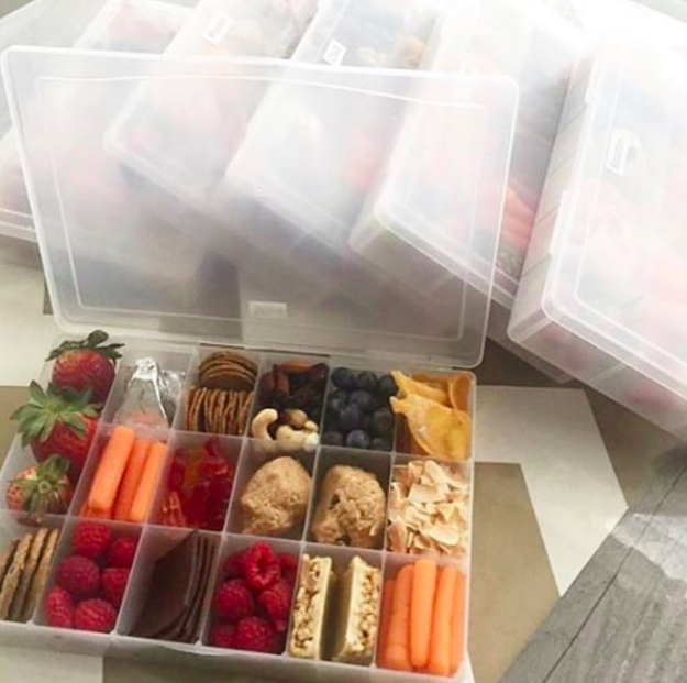 Используйте пластиковый органайзер, чтобы взять с собой закуски.