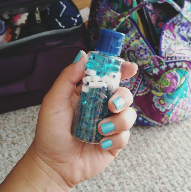 Поместите все витамины в одну небольшую бутылку вместо того, чтобы везти несколько громоздких контейнеров.