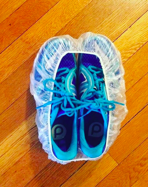 Упакуйте обувь в шапочку для душа, так она ничего не испачкает.