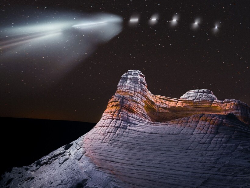 Ву снимал пейзаж с длинной выдержкой и обнаружил, что дрон добавляет такой необычный след