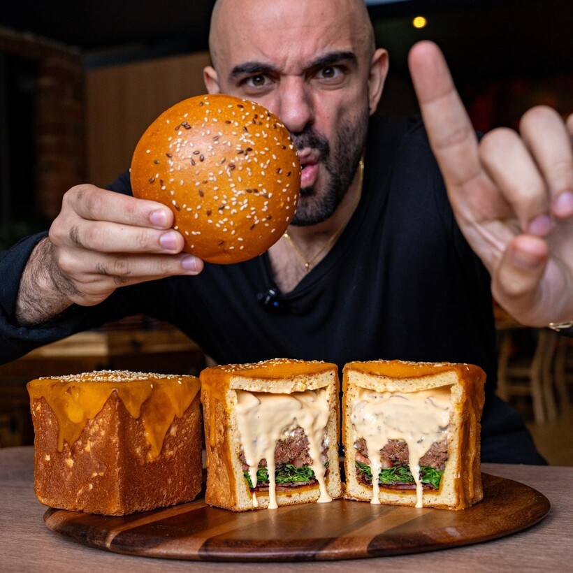 Не сомневайтесь, кубический бургер спроектирован с особой точностью, и в нем все идеально. Повар берет квадратную булочку хлеба, из которого вынута вся мякоть, и заполняет ее начинкой. На дно кладут кусочек чеддера, после него ― жаренный бекон, зелень и помидоры, сверху ― квадратная котлета и слой майонеза. Но это только половинка бургера: дальше опять следуют томаты, еще одна котлета, соус барбекю, поджаренный до хруста бекон и горчица.