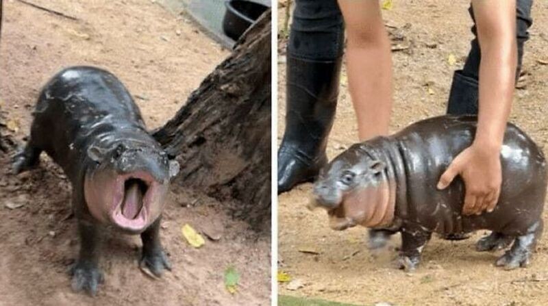 Карликовый бегемотик по кличке Му-Денг из зоопарка Таиланда