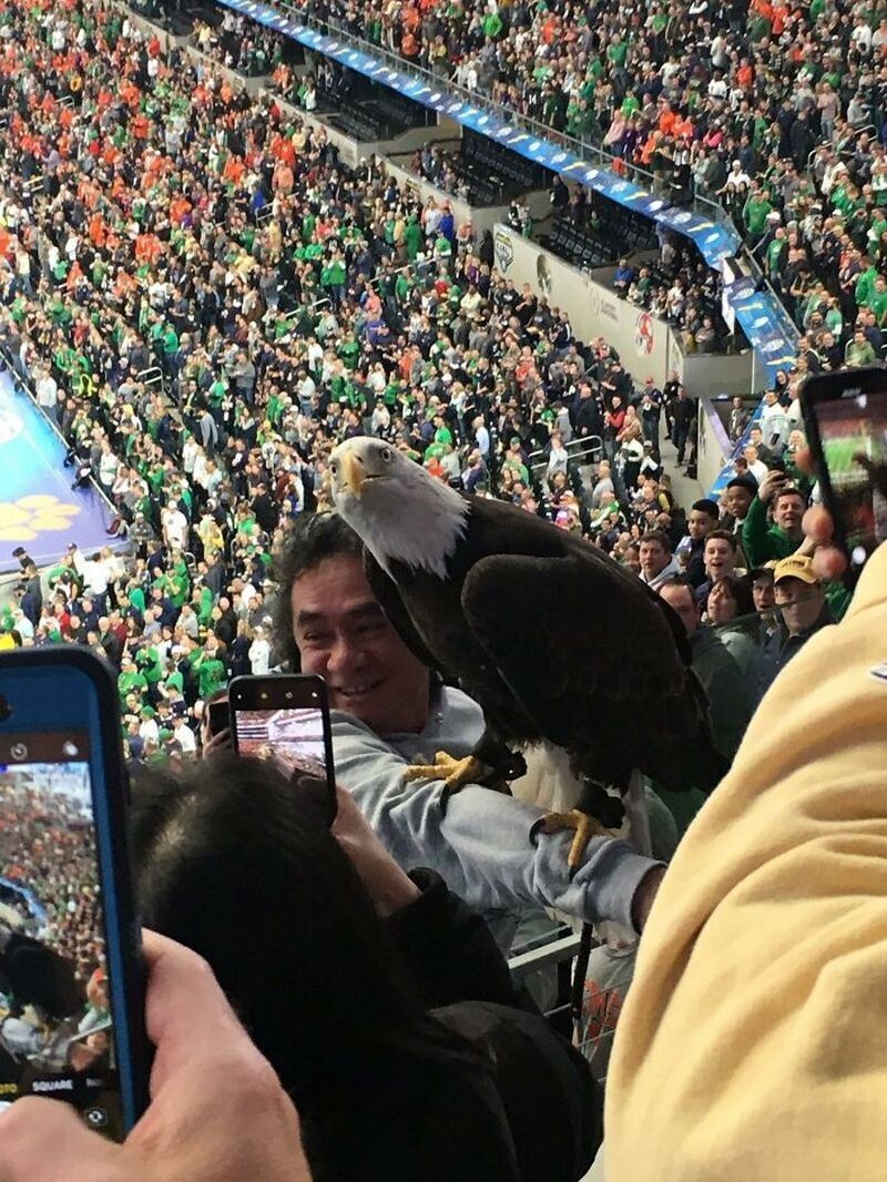 Орел решил тоже посмотреть футбольный матч среди студентов колледжей