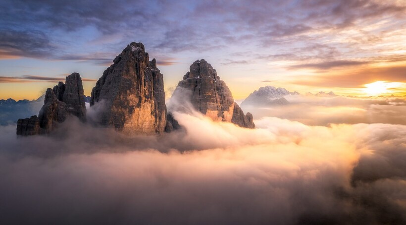 Закат в горах Тре-Чиме-ди-Лаваредо в Италии