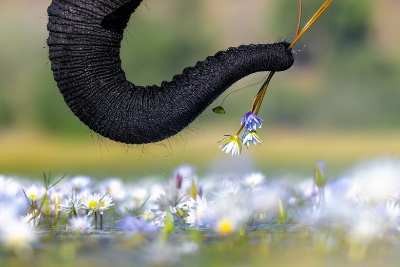 Слон лакомится кувшинками