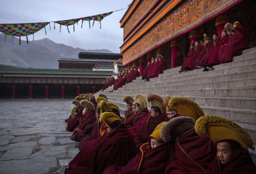 Монахи со снимков относятся к ордену гелуг, это дословно означает «желтая вера»