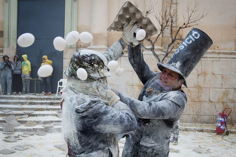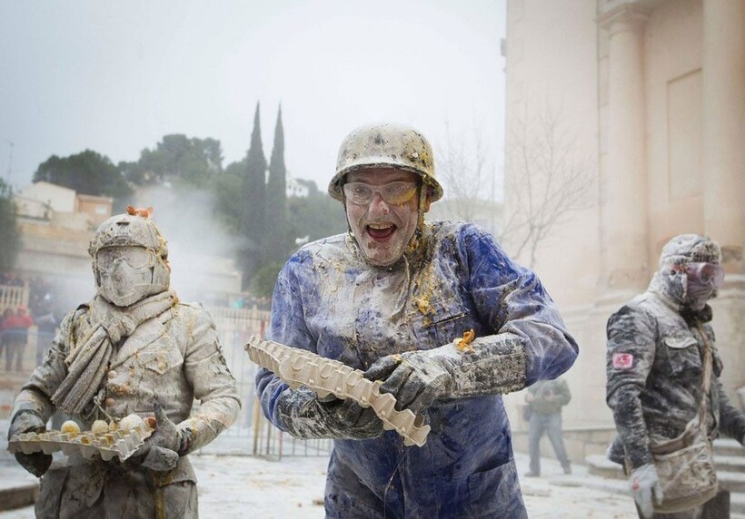 Конец декабря в разных странах выглядит по-разному: где-то в последних числах месяца люди наслаждаются рождественскими праздниками, а где-то это самые безумные и загруженные дни перед Новым годом. Но в испанском городке Иби 28 декабря ― особенный день, ведь здесь устраивают сумасшедшую яично-мучную битву. Люди выходят на улицы и закидывают друг друга яйцами и мукой, а заканчивается битва яркими танцами. Самое удивительное, что эта битва ― самый странный способ в мире собрать деньги на нужды города.
