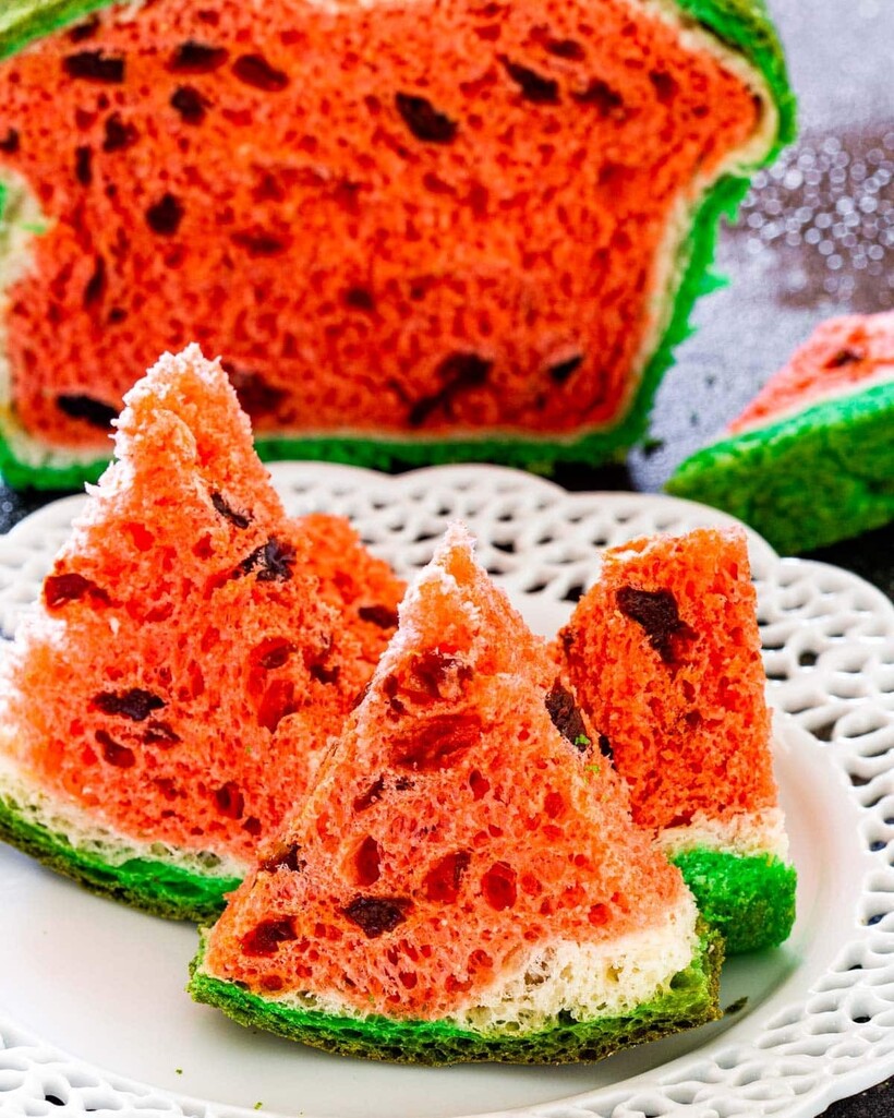 В теплых странах всегда в летний зной сложно накормить детей, ведь у всех из-за жары снижается аппетит. Но одна пекарня из Тайваня была очень изобретательна и придумала, как решить эту проблему: они выпустили для жары кое-что особенное ― хлеб в виде… квадратного арбуза! Предлагаем вам посмотреть на эти идеальные кусочки, от которых ваш аппетит разыграется!