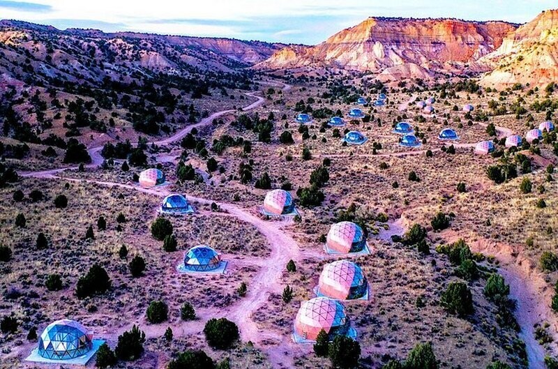 Это комплекс из более чем 60 геодезических куполов, которые расположены на удалении друг от друга