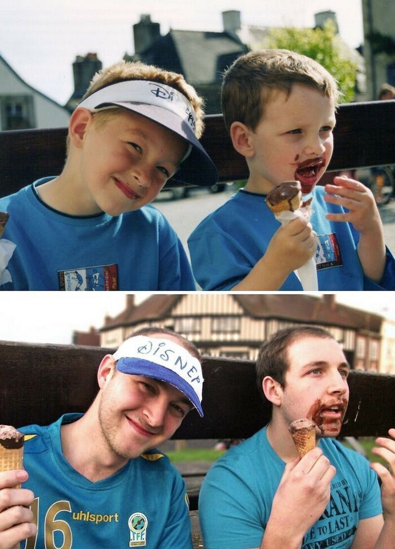 Вам известны эти чувства: вы достаете свой фотоальбом, а затем за просмотром снимков не замечаете, как пролетает пара часов? Если вам нравится такое погружение в прошлое, то сегодняшний материал для вас, ведь мы собрали подборку от пользователей, которые повторили свои любимые снимки спустя годы. Глядя на эти фото, начинаешь понимать, почему они это сделали.