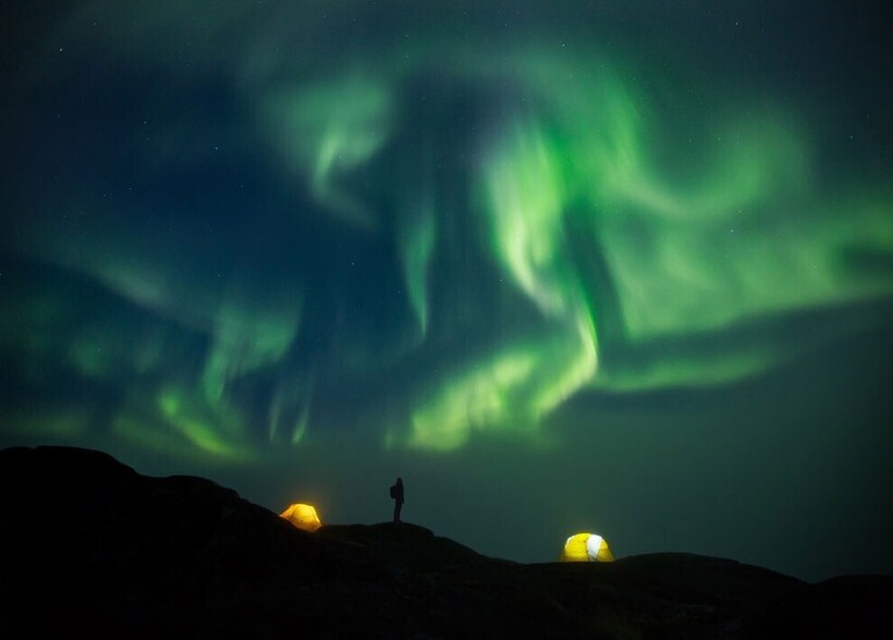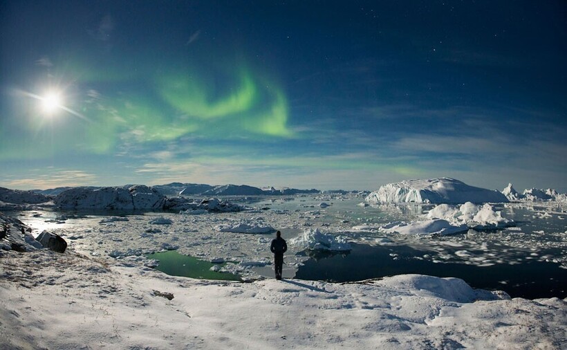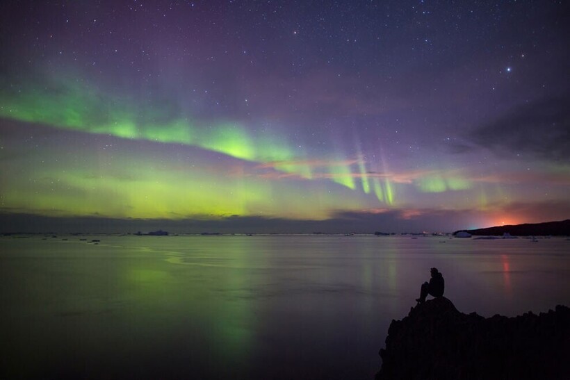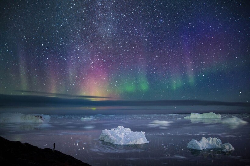 Ему удалось запечатлеть глыбы льда даже во время северного сияния