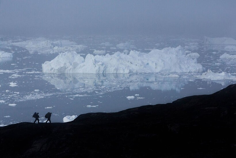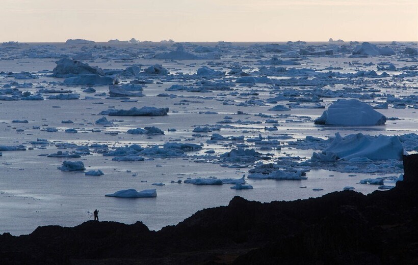 Фьорд длиной 40 километров наполнен айсбергами, регулярно сползающими с ледника