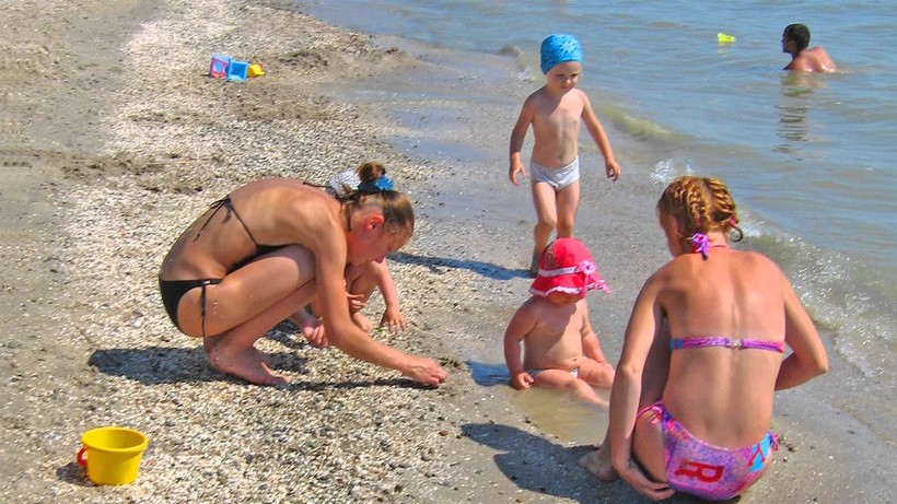 На побережье Азовского моря рекордное количество солнечных дней в году и удивительно пологие песчаные берега. Именно поэтому это идеальное место для отдыха с детьми. Практически все пляжи состоят из мелкого ракушечного песка.