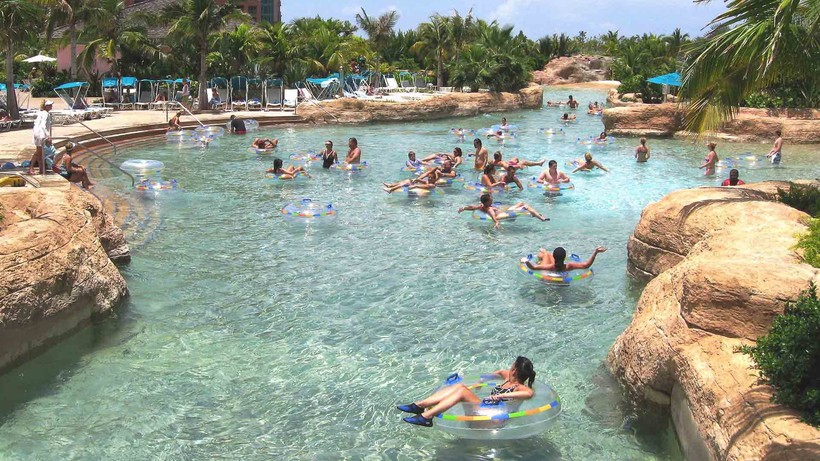 Помимо горок, Aquaventure предлагает еще спуститься по реке с полутораметровыми волнами и сильным течением. Туристы проделывают путь в полтора километра через джунгли, пещеры и пороги. А для тех, кто просто хочет полежать у воды, есть 11 бассейнов на любой вкус.