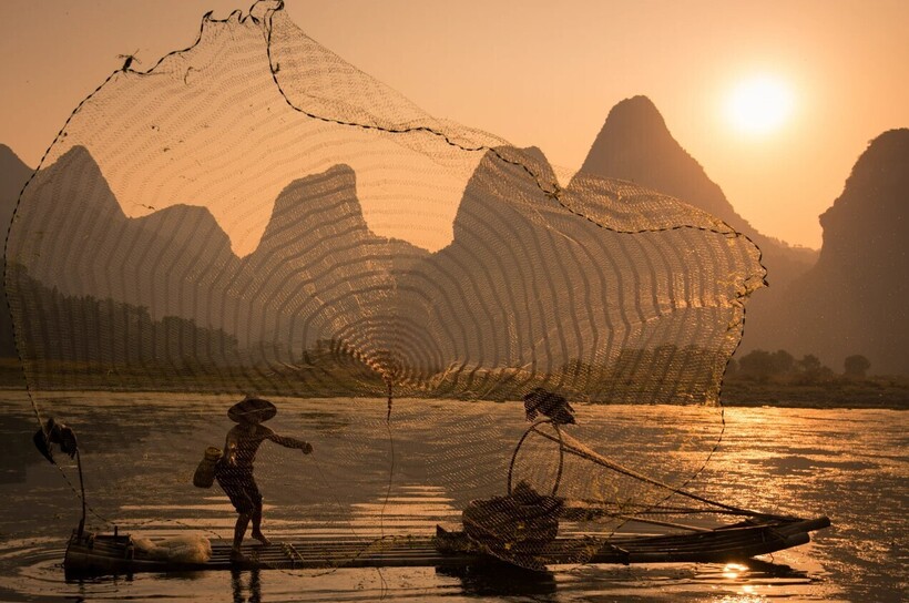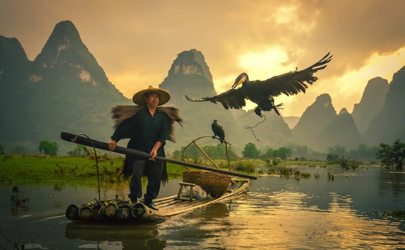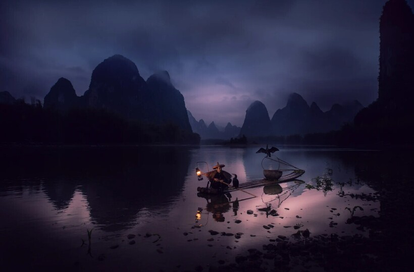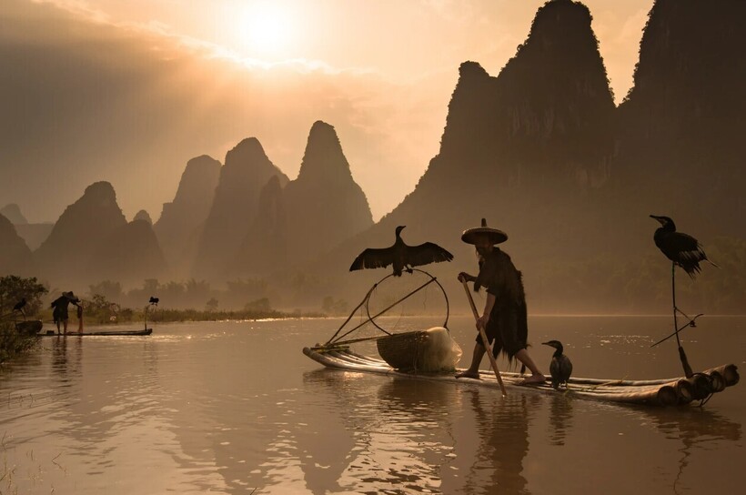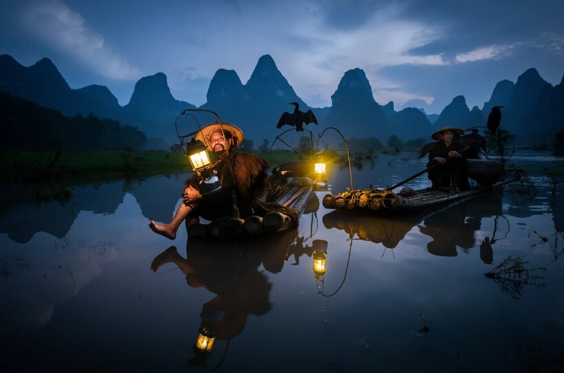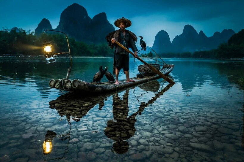 Мы рассказывали об уникальной традиции рыбачить с бакланами, популярной еще тысячу лет назад в Китае и Японии. Сегодня в этих странах практически невозможно встретить рыбаков, которым помогают с уловом птицы. Но если постараться, то все-таки найти их можно. Фотограф Энди Билз специально для этого отправился в китайский город Гуйлинь. Здесь он познакомился с несколькими мужчинами, которые много лет выращивают бакланов и выходят с ними на реку, чтобы добыть себе пищу.