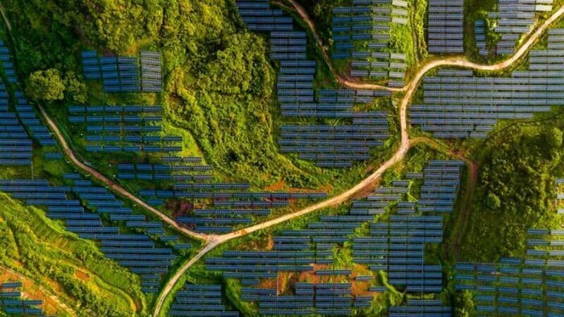 Вид сверху на солнечные батареи в китайской провинции Гуандун