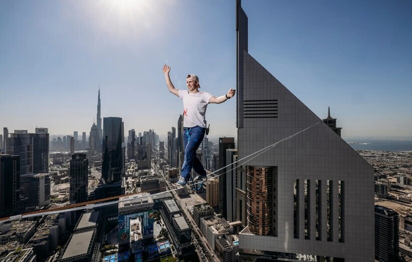 Эстонский экстремал Яан Роозе предлагает взглянуть на Дубай с высоты птичьего полета. Однако он не запустил над мегаполисом дрон для живописных кадров и даже не сделал съемку с вертолета, а совершил смертельный трюк: прошел по 100-метровому канату, натянутому между небоскребами.