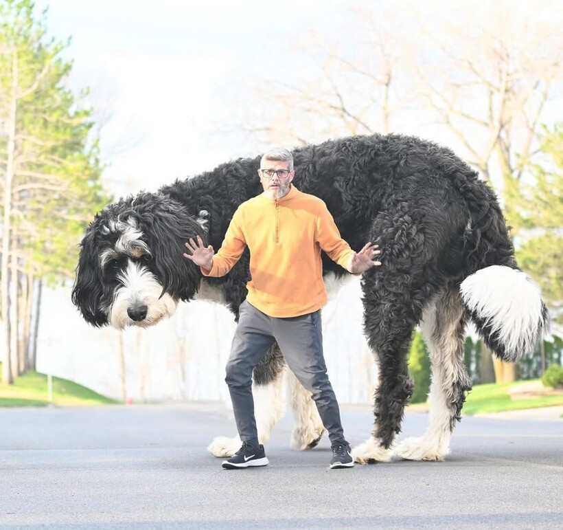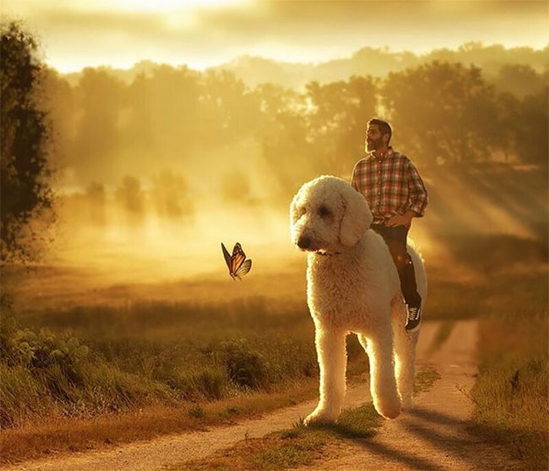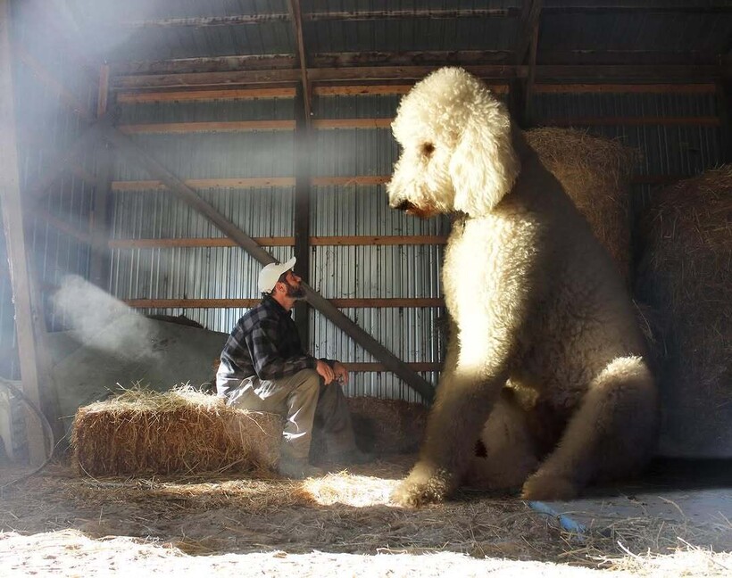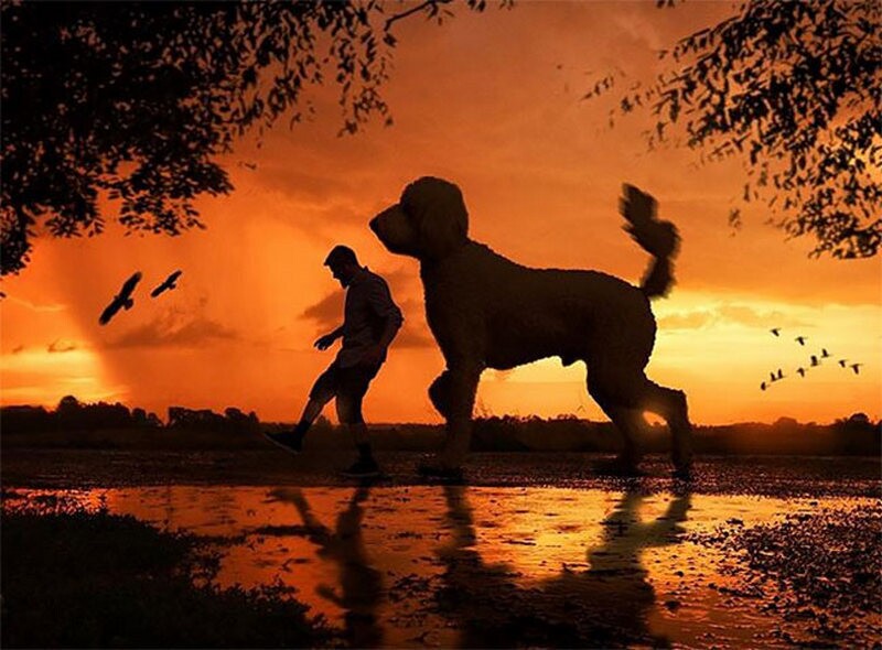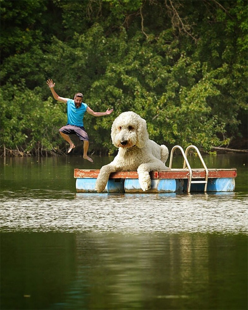 С помощью Photoshop Клайн превратил своего маленького друга в гигантского пса