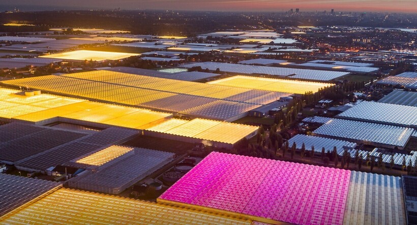 Вид с высоты на теплицы для выращивания микрозелени в Нидерландах