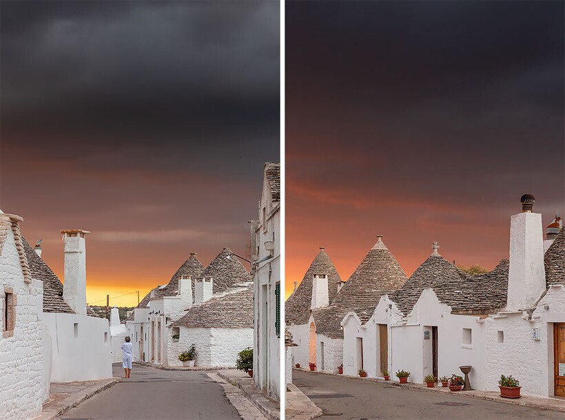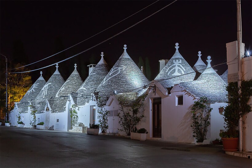 В Италии есть прекрасные городки, о которых знают не все путешественники (вот тут у нас целая подборка). Альберобелло как раз из таких: это небольшой городок в южной части Италии. Его уникальная архитектура привлекает туристов со всего мира благодаря так называемым труллям — белым каменным домам с характерными коническими крышами. Таких строений здесь больше 1400, сейчас в них находятся как дома местных жителей, так и магазинчики, сувенирные лавки, отели. Предлагаем вам узнать немного об истории этих необычных домиков через снимки Тани Депаскалис и Тьяго Маркеса. Фотографы провели в этом городке четыре дня, снимая все: от первых лучей солнца на рассвете до загадочных ночных теней. Цель фотографов заключалась в том, чтобы запечатлеть дух этого волшебного места.