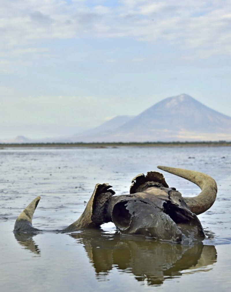 Озеро Натрон в Танзании, богатое щелочью: все, что попадает в его воды, погибает и покрывается солью