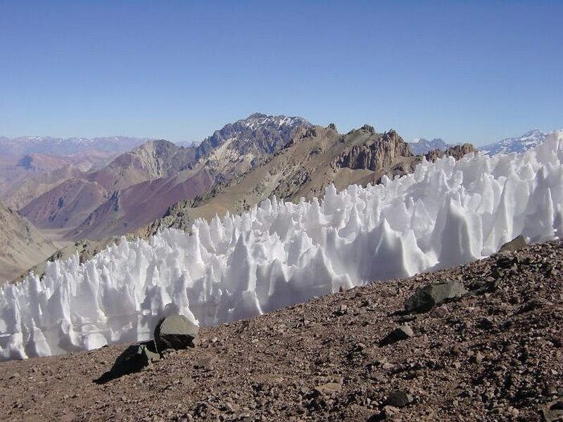 Странные образования из снега и льда под названием «Кающиеся монахи»: они могут достигать 30 метров в высоту