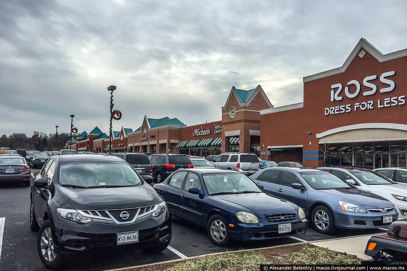 В Америке очень много разных магазинов, помимо гипермаркетов. Все они кучкуются, как правило, в таких «плазах», небольших одноэтажных торговых центрах с большой парковкой и отдельными входами.