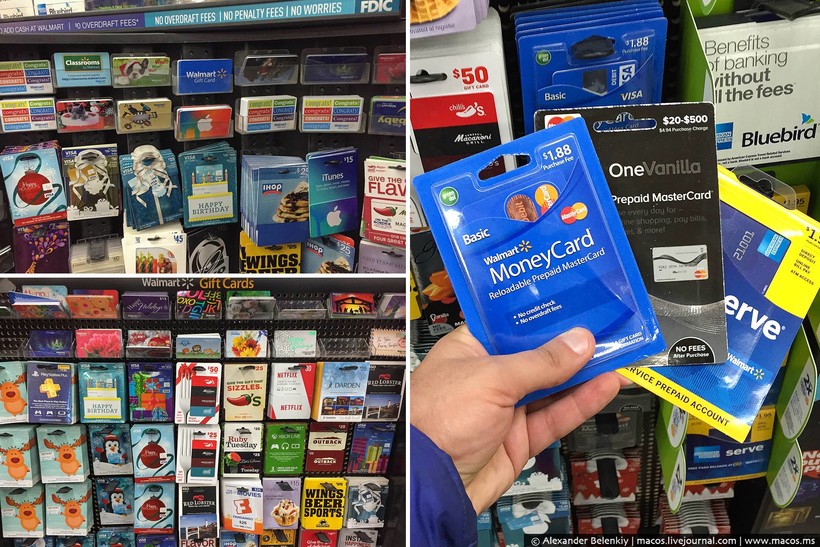 Перед зимними праздниками многие приезжают в Волмарт еще и за подарочными картами. То, что в России почему-то так и не прижилось, в Штатах чуть ли не главный подарок для друзей, но не очень близкий. Каждая сеть ресторанов и магазинов имеет свои карточки. Знаете, что ваш приятель любит ходить в стейк-хаусы Outback? Подарите ему карту на 25 долларов. Этого хватит, чтобы он сводил жену в ресторан, как раз в эту сумму обычно обходится ужин на двоих. Есть и предоплаченные банковские карты. Не знаешь, что подарить, а наличные в конверте неприлично? Подари Визу или Мастеркард, человек сам решит, что купить.