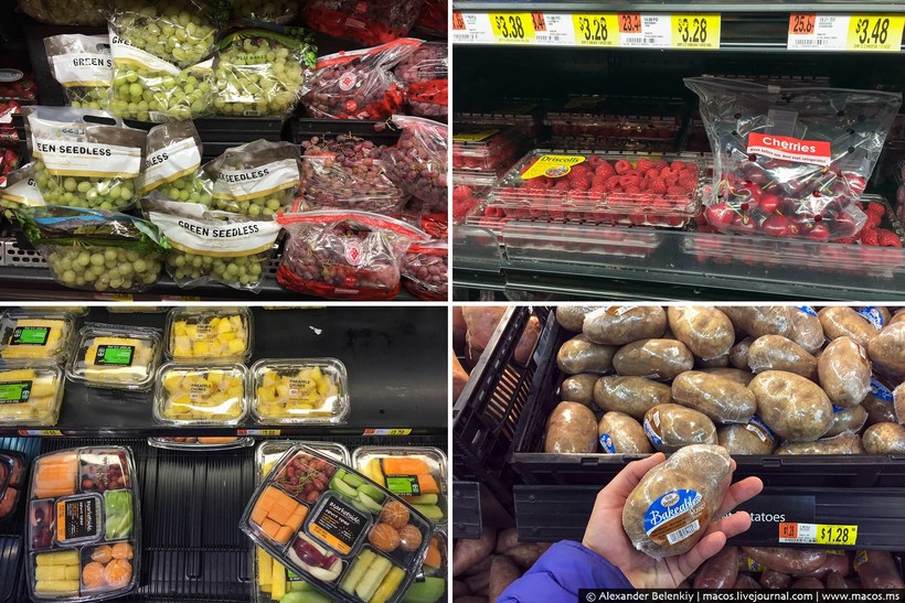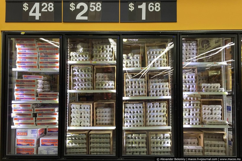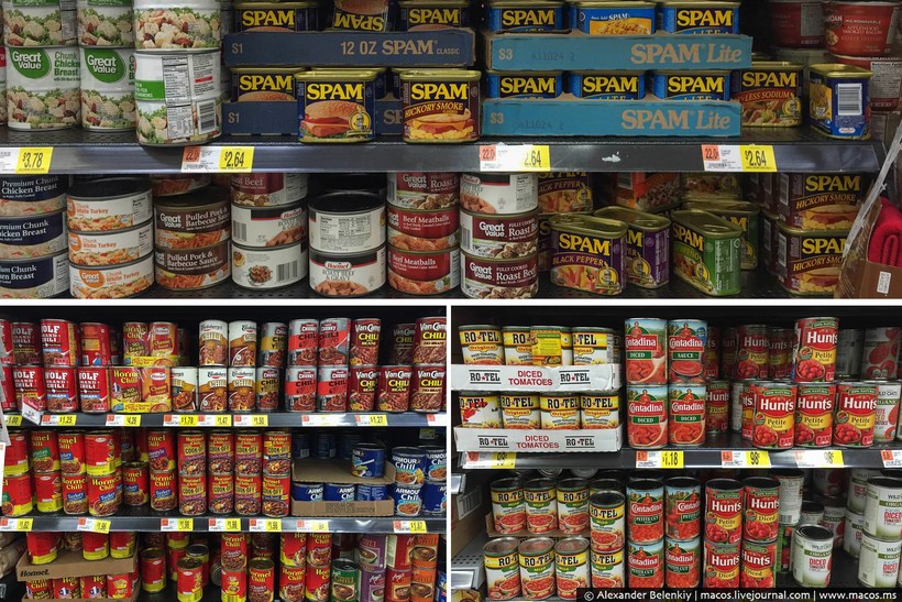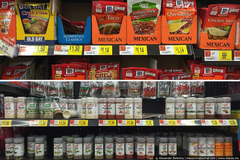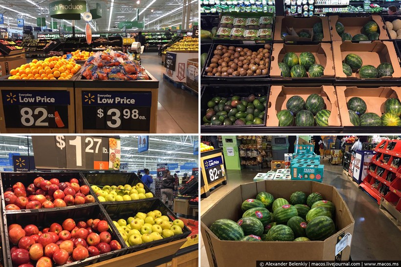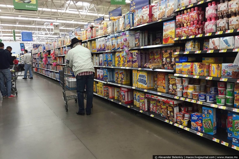 Когда я писал про свою продуктовую корзину, что я покупаю в Штатах на неделю, многие русские эмигранты, осевшие в стране, пытались меня пристыдить: Что ты, мол, в Walmart ходишь? Это же магазин для бомжей! Вот сходил бы в Whole foods! Было смешно читать те комментарии. Некие стереотипы про Волмарт здесь существуют, как и у нас про Ашан, но все американцы делают это. Покупать сразу на неделю удобно, к тому же продукты, как правило, везде одинаковые, а в гипермаркетах дешевле. С точки зрения эксперимента эта сеть подходила как нельзя лучше: можно и в Москве в «Азбуку Вкуса» сходить, но это не будет типичным российским супермаркетом. Итак, от того и отталкиваемся: Волмарт в Америке — это как Ашан (или Окей) в России.