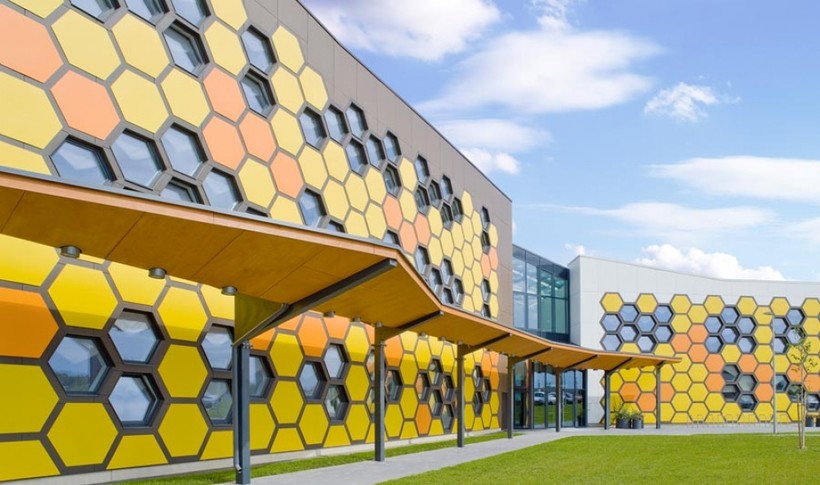 Общежитие Профессионального учебного центра, Валга. В здании установлено рекордное количество окон — 410. Каждое выполнено в виде шестигранника, напоминающего медовую соту.