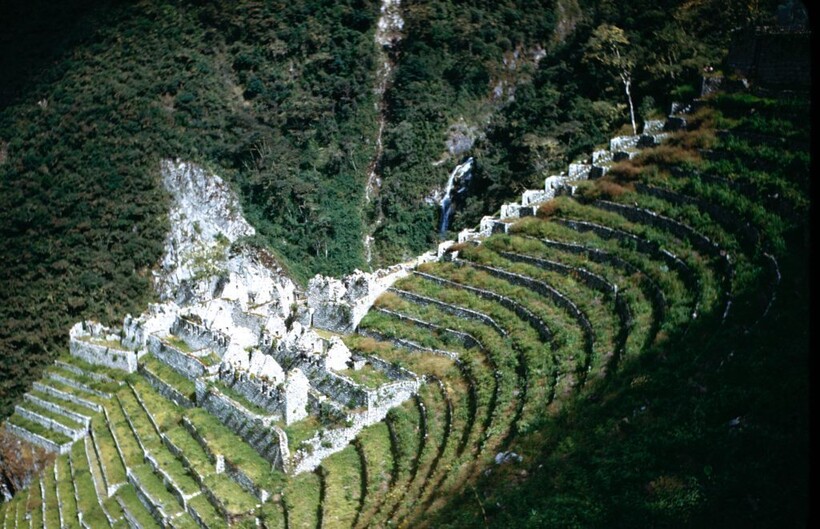 Вид с высоты на городок Уиньяй Уайна, который находится по пути в Мачу-Пикчу и был обнаружен в 1941 году