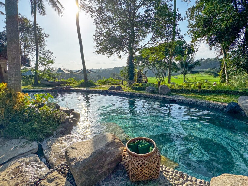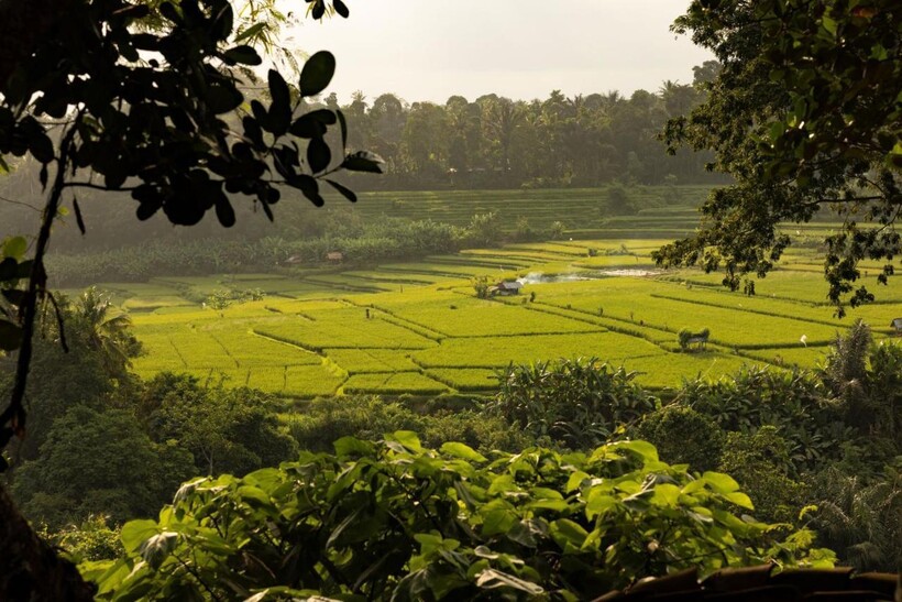 Для Bambu Indah выбрали прекрасное расположение: среди рисовых полей с видом на реку Аюнг и вулкан