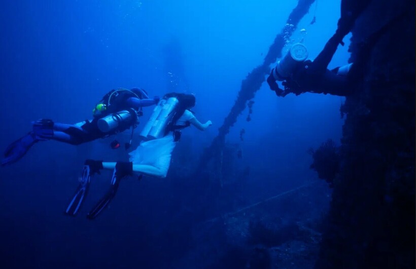 Съемка длилась 52 минуты, и 15 из них были проведены на дне