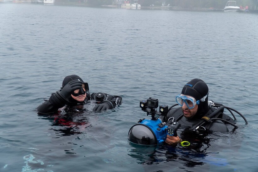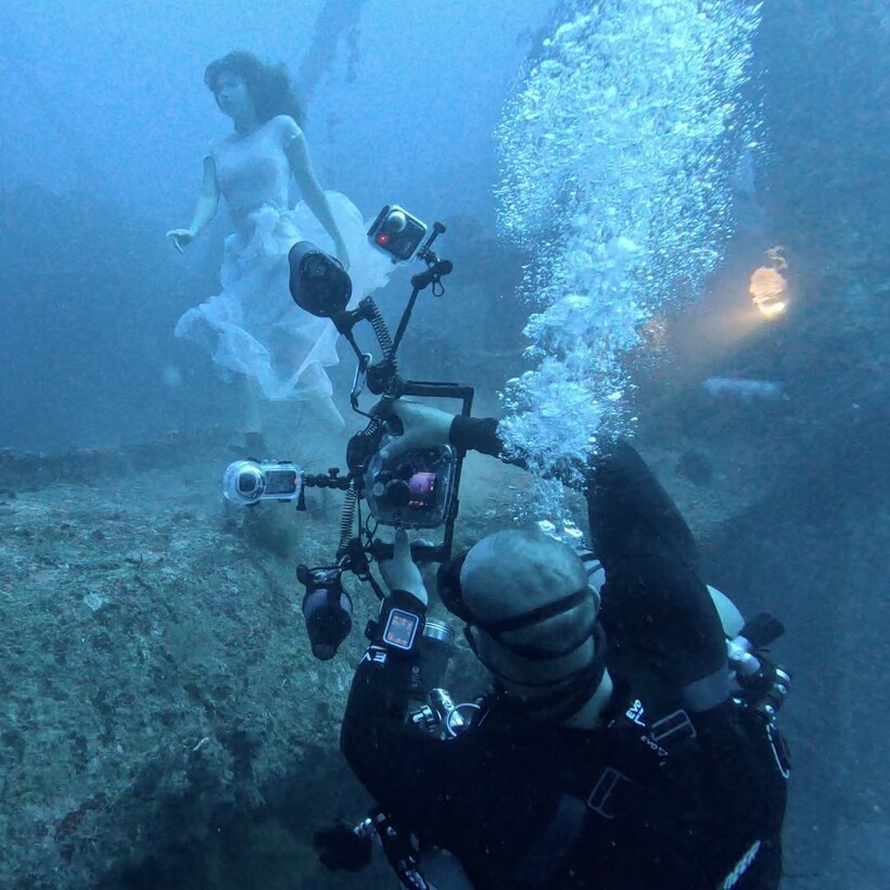 Для съемок потребовалась большая команда, включая страхующего дайвера