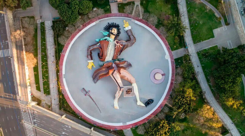 Площадка в виде Гулливера, которого поймали лилипуты, в Валенсии, Испания