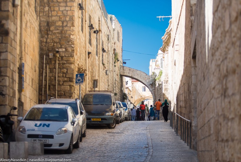 А вот здесь арабская часть заканчивается и начинается христианская. Стою одновременно на обеих.